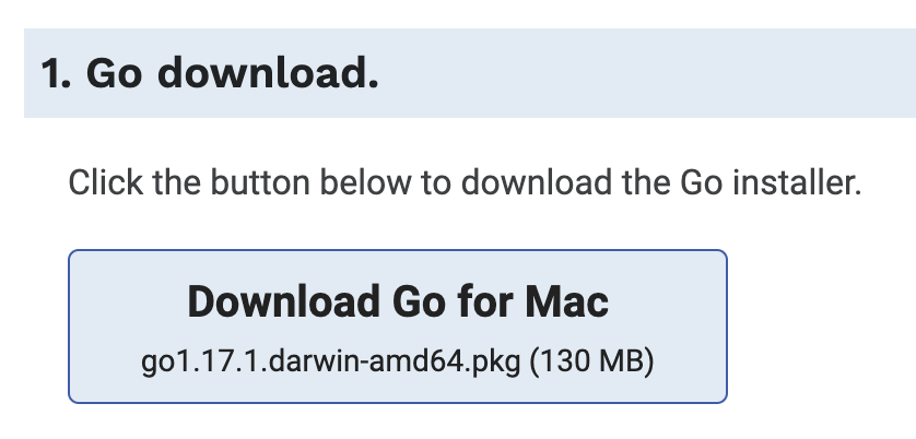 - 공식 홈페이지 (https://golang.org/doc/install) 에 접속하여 os 에 맞는 버전을 설치한다.