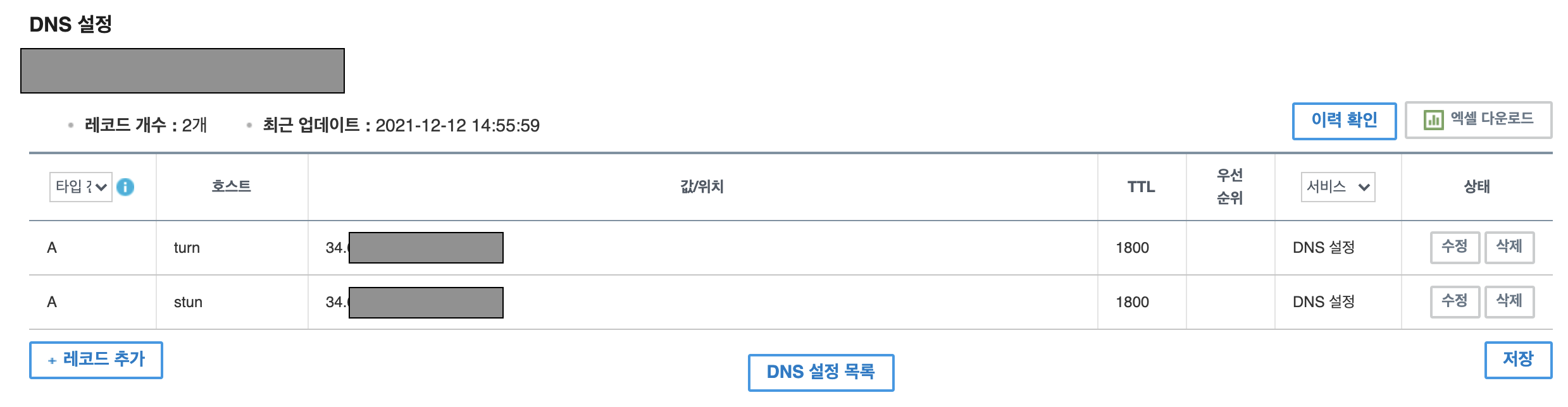 - 여기서는 turn.xxxxxx.com 과 stun.xxxxx.com 과 같은 서브 도메인을 사용하였다.
