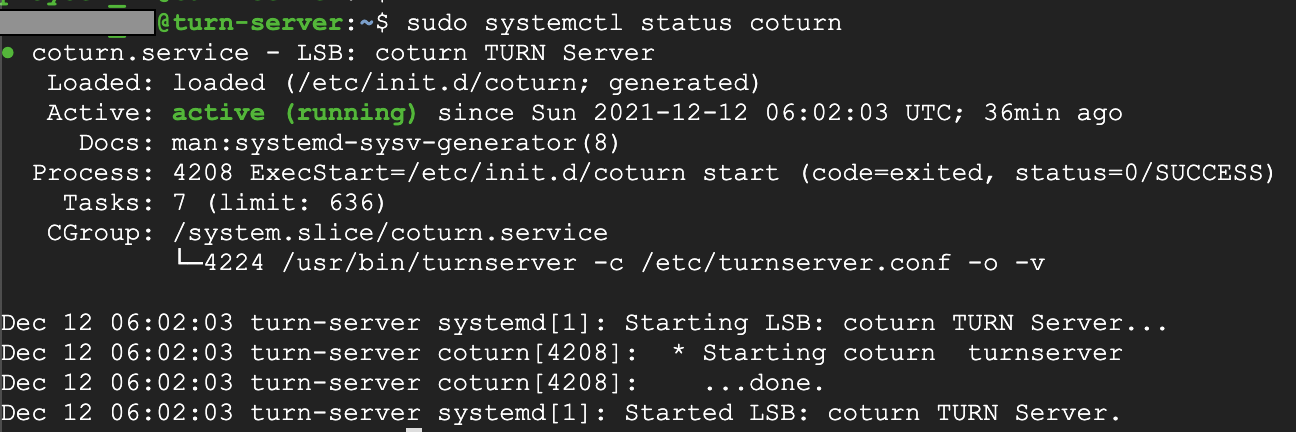 sudo systemctl status coturn