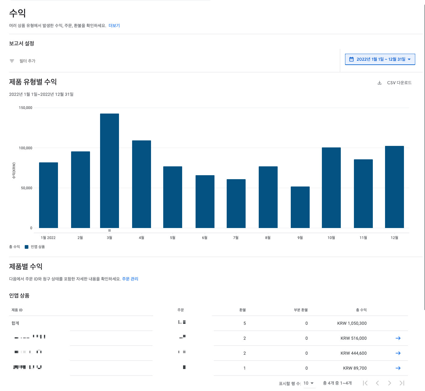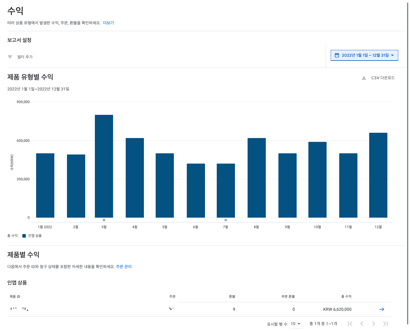 2020년 말 추가로 비슷한 앱을 오픈하였고 2021년~2022년 트래픽이 조금씩 유입되기 시작하면서 인앱결제가 발생하였는데