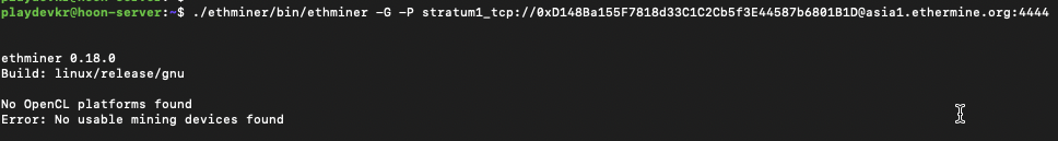 - ethermine.org/start에서 서버 정보를 확인 후 마이닝을 시작한다.